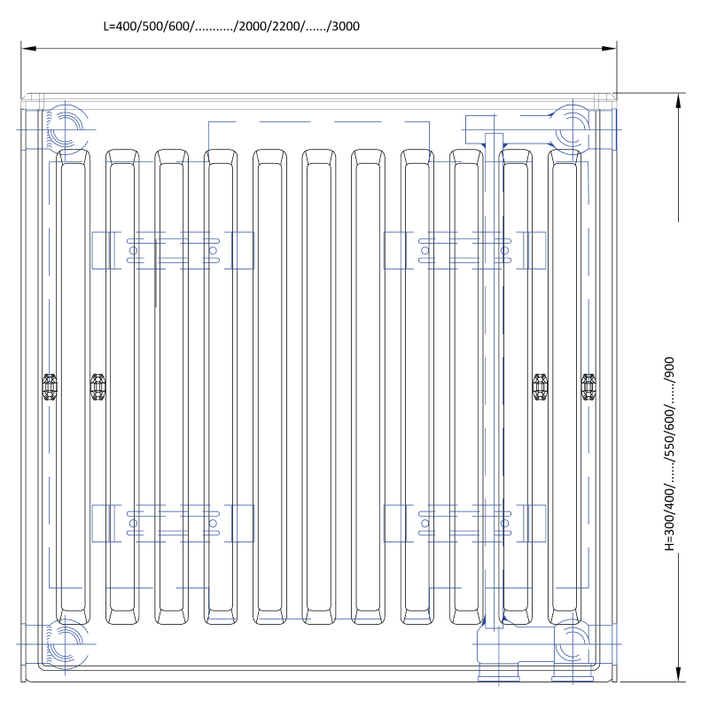 Lisenen Heizkörper Typ 21 Ohne Aufhänger - 8 Anschlüsse - weiß