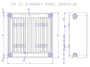 Austausch Heizkörper Typ 33 mit Aufhänger - 4 Anschlüsse - weiß